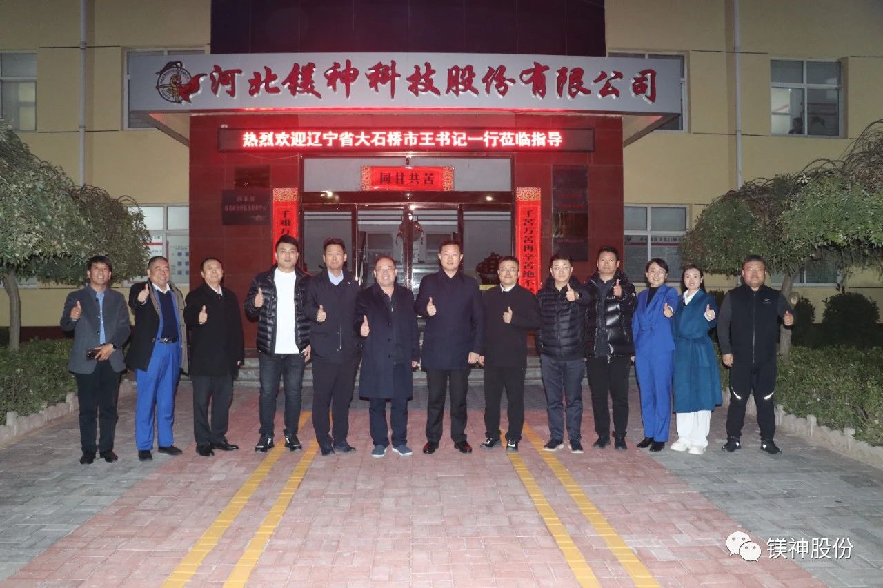 11月13日,遼寧省大石橋市市委書記王殿豐一行蒞臨河北鎂神科技股份有限公司(以下簡稱“鎂神科技”),鎂神科技董事長孫文帶領公司高管熱情接待,并陪同參觀了榮譽室、研發中心、生產車間和倉庫。此次交流旨在加強兩地企業間的合作,推動產業發展和技術創新。