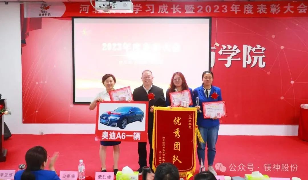 4月19日,河北鎂神科技股份有限公司2023年度表彰大會圓滿落幕,共發放獎勵600余萬,其中提成發放180余萬,發放優秀員工、干部和團隊獎金119萬,專項獎勵發放137萬,分紅發放160萬。現金560余萬,另發放奧迪A6一輛!