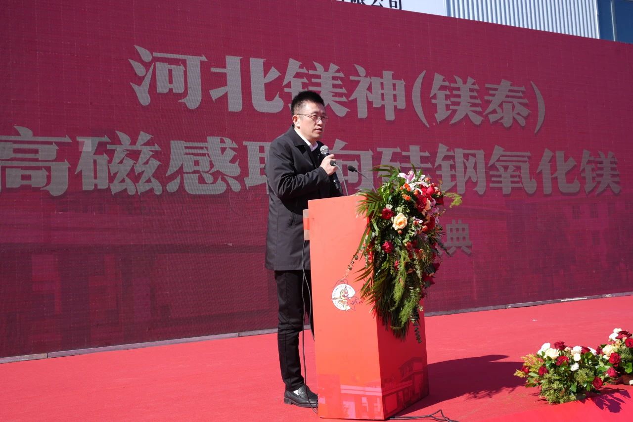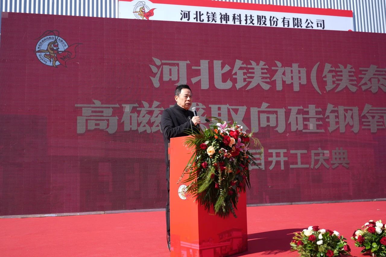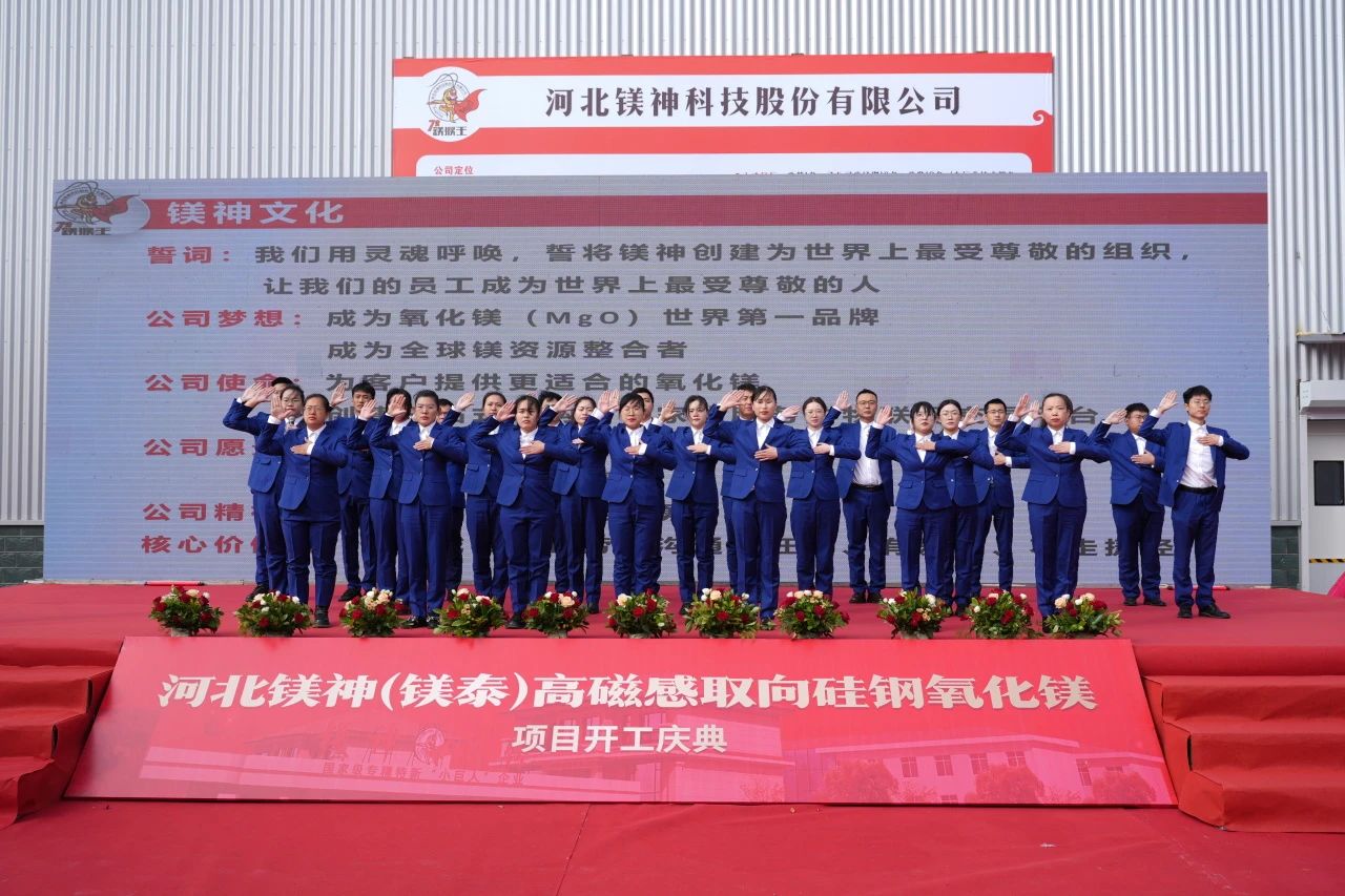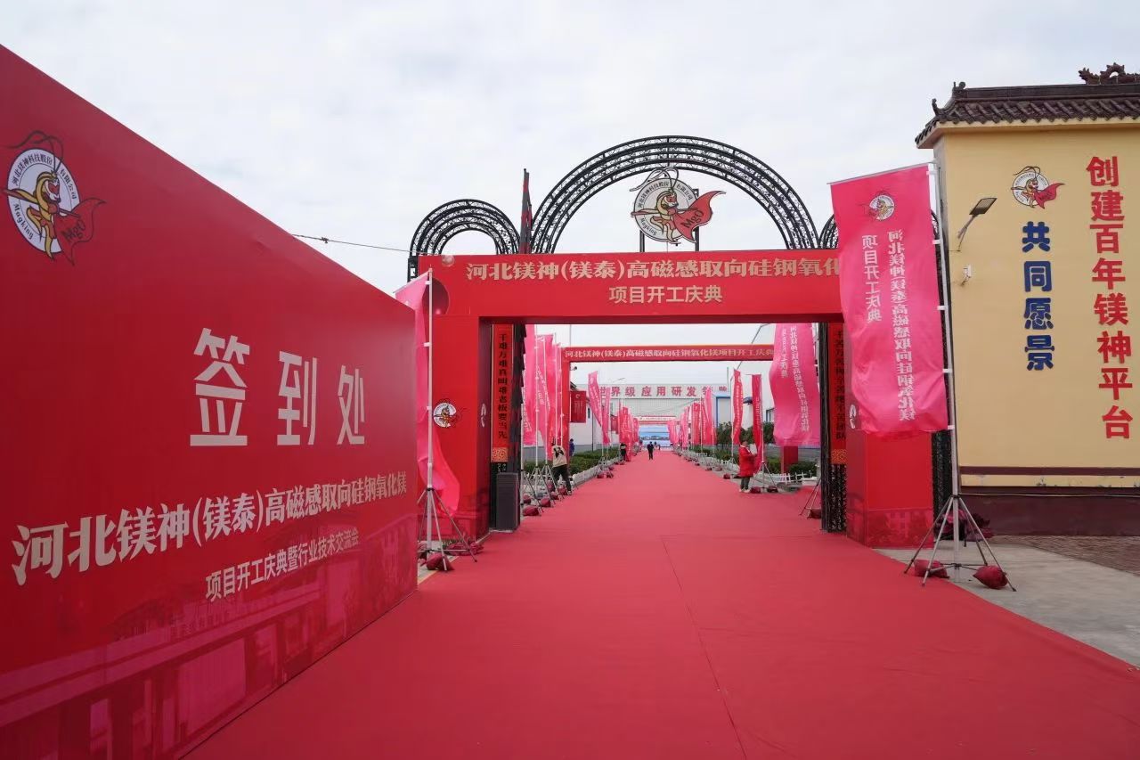 2024年10月19日,河北鎂神科技股份有限公司(以下簡稱“鎂神科技”)在廣宗工廠隆重舉行“河北鎂神(鎂泰)高磁感取向硅鋼氧化鎂項目開工儀式”,并于當天下午舉辦了技術交流會。此次活動匯聚了來自政府、行業協會、科研機構及企業的眾多領導、專家和合作伙伴的熱情參與,共同見證中國硅鋼級氧化鎂歷史上一里程碑時刻。
