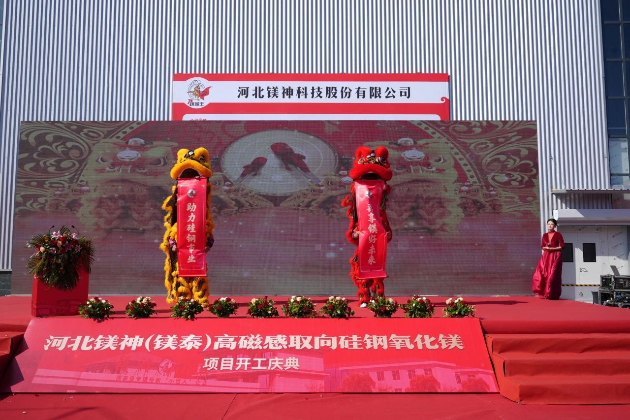 隨后,伴隨著鼓聲和音樂,舞獅的跳躍騰挪、靈動自如,為開工儀式增添了喜慶的氛圍,也表達了對公司項目順利推進的美好祝愿。接著,鎂神科技董事長孫文先生發表了熱情洋溢的致辭,正式開啟了高磁感取向硅鋼氧化鎂項目的輝煌篇章。