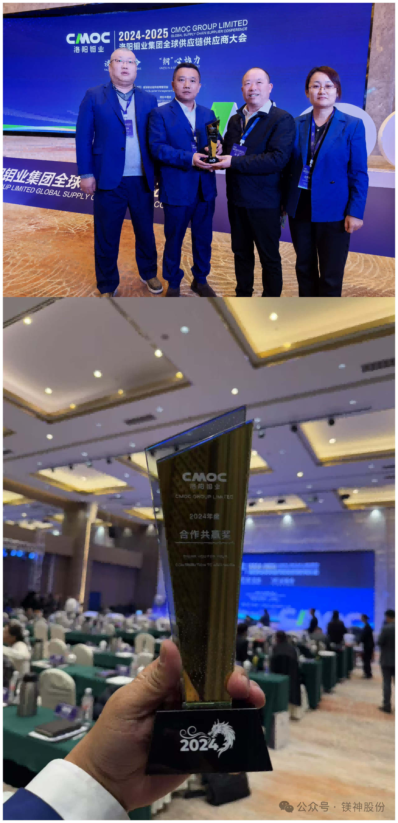 昨日,河北鎂神科技股份有限公司(以下簡稱“鎂神科技”)憑借其卓越的創新實力和深耕細作的態度,榮獲了洛鉬集團頒發的“2024年度合作共贏獎”。